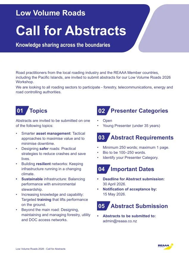 Inviting road practitioners from the local roading industry and the REAAA Member countries, including the Pacific Islands!